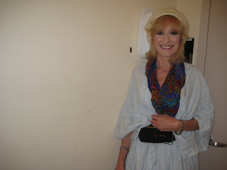 So, onward now to "Where's My Stylist?" - (nowhere to be found, apparently). Strangely, dragged out one of Mum's old scarves, which I inherited, (a stained glass window pattern), along with my beret. Nothing like a crappy looking gown AND bad humidity hair day!